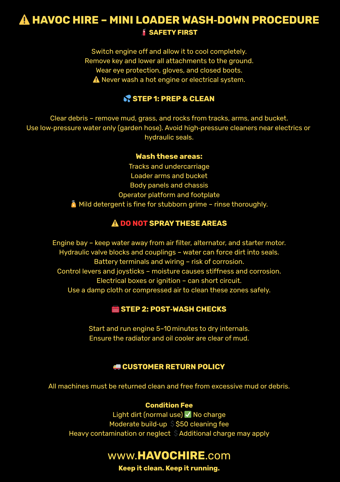 HAVOC HIRE – MINI LOADER WASH‑DOWN PROCEDURE (png)